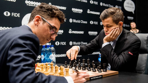 Столкновение двух машин: расчетливый Фабиано Каруана черными перехитрил мощного Магнуса Карлсена (Сент-Луис, 2014)
