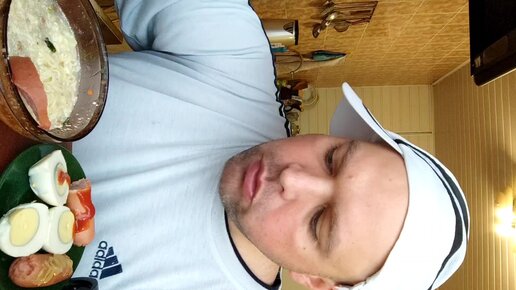 Кушаю доширак с яйцами и сосисками