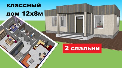 Одноэтажный дом 12 на 8. Проект дома. План дома 12х8м. Проекты домов. Планировка. PROFINTEM