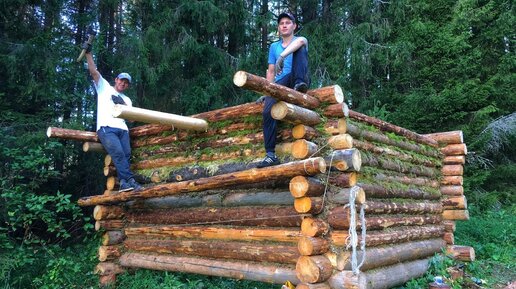 ИЗБА В ЛЕСУ - часть 5 | Охапка дров и сруб готов🌲