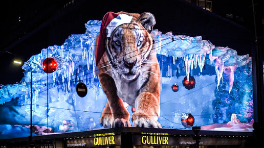 Голограмма гигантского тигра появилась на фасаде торгового центра в Киеве