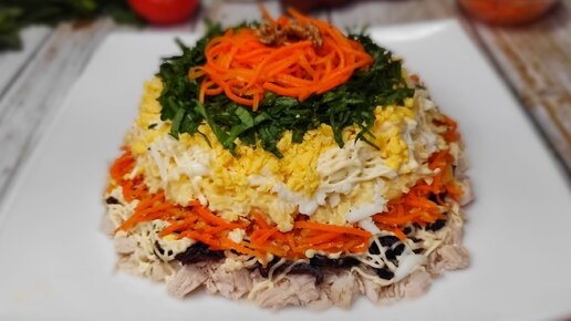 Праздничный САЛАТ "МАРСЕЛЬ" с курицей, черносливом и морковью по-корейски"!