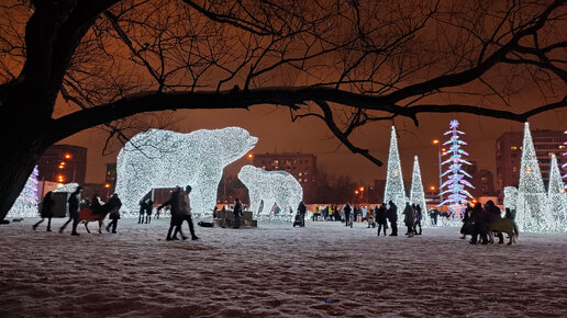 Световая инсталляция «Полярные медведи» у Ростокинского акведука