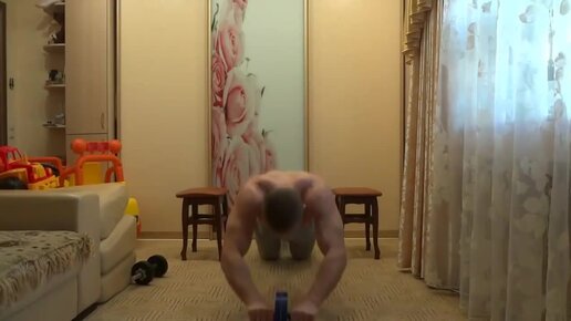 Тренируем пресс при помощи табуреток, гантели и ролика !?