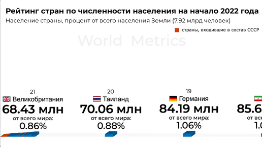 Рейтинг стран по численности населения на начало 2022 года. Какое место у России?