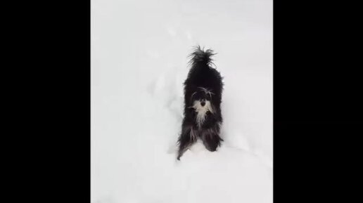 Щенок радуется первому снегу. Молли 7 месяцев.