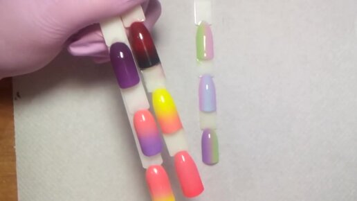 Горизонтальный градиент дизайн ногтей, кистью для градиента.