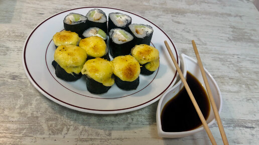 Домашние запечённые роллы с сырной шапочкой и заправка для риса без уксуса