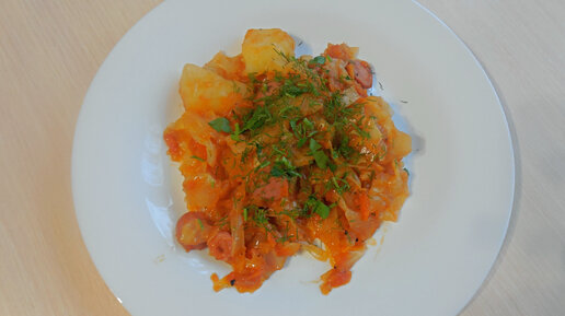 Тушеная капуста с картошкой и сосисками! Вкусный ужин на всю семью!