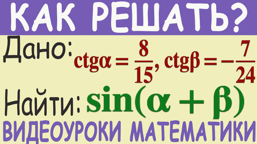 Как найти sin(α+β), если известно, что ctg α=8/15, ctg β=-7/24 . Простое решение