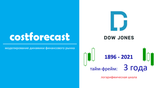 График логарифмических значений индекса Dow Jones (1896-2021), time frame 3 года.