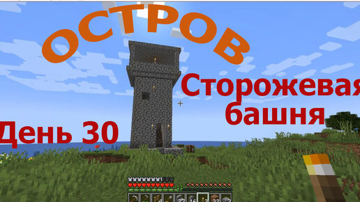 Майнкрафт. 2-я серия выживания на острове. Строим сторожевую башню, для защиты от пиратов.