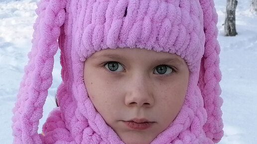 Трендовая балаклава с ушками зайца из плюшевой пряжи