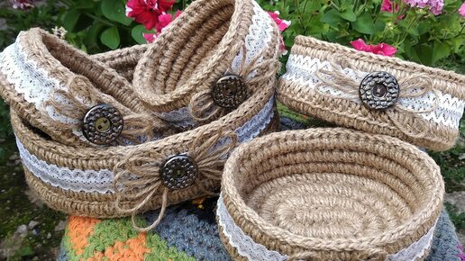 Что связать крючком из шпагата. Необычное применение. Красивый декор интерьера