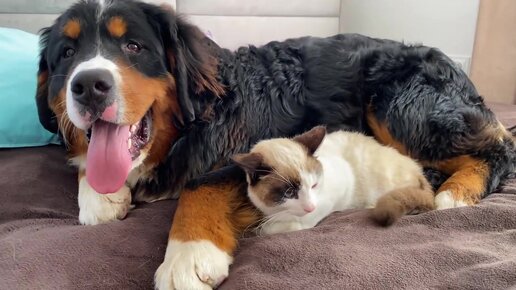 Что делает бернский зенненхунд, когда кошка его игнорирует