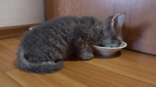 Первый обед котёнка Максика на новом месте