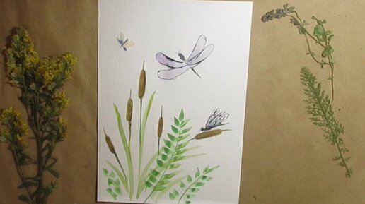 Пошаговое рисование для начинающих. Рисуем камыши и стрекоз