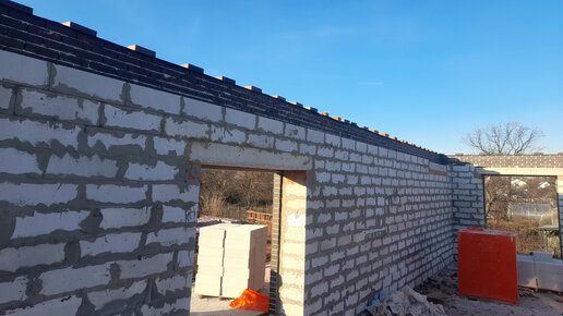 Строительство дома. Смонтировали перемычки, достроили основную стену из газобетона под армопояс