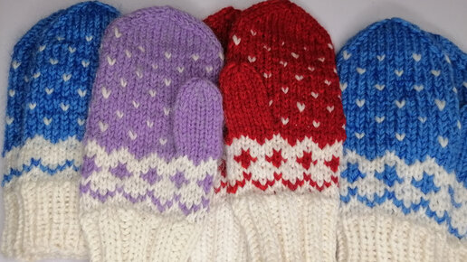 Детские варежки с жаккардовым узором. Самый простой способ вязания. Вязание спицами.