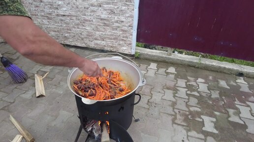 как приготовить ПЛОВ КИРГИЗСКИЙ В КАЗАНЕ НА КОСТРЕ (для новичков простой способ)