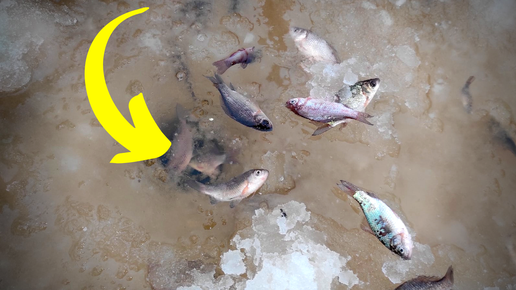 Наглядно показываю, почему нужно делать зимой лунки на водоёмах