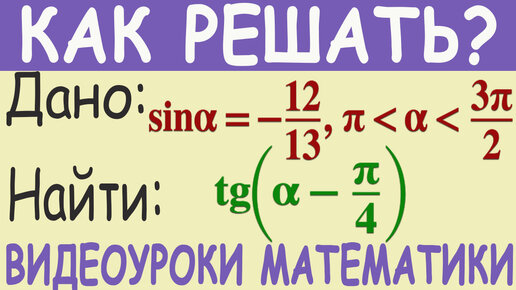 Как найти tg(α-π/4), если известно, что sin α=-12/13, α - угол третьей четверти . Простое решение