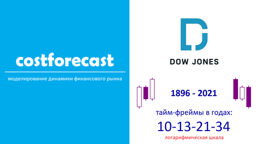 График логарифмических значений индекса Dow Jones (1896-2021), time frame в годах: 10, 13, 21, 34.