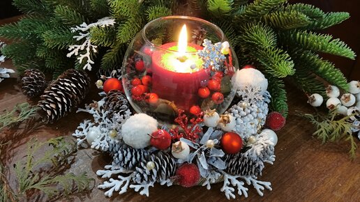 Увидела похожий подсвечник за бешенные деньги, сделала лучше почти бесплатно. Рождественское украшение стола