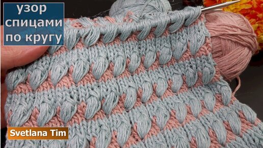 УЗОРЫ ДЛЯ ВЯЗАНИЯ ПО КРУГУ. Двухцветный Узор спицами "Пламя Свечи" вяжем круговыми спицами.
