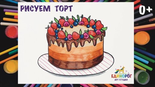 Как нарисовать торт. Простые рисунки. Уроки рисования.