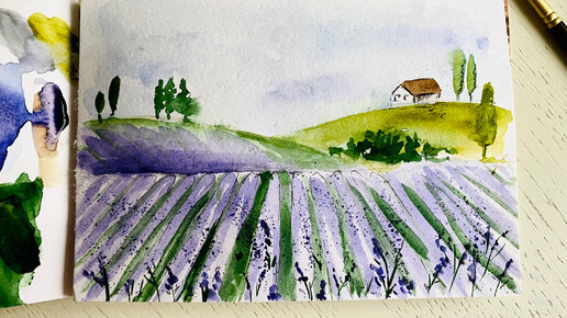 Как легко нарисовать пейзаж акварелью. Рисуем поле с лавандой