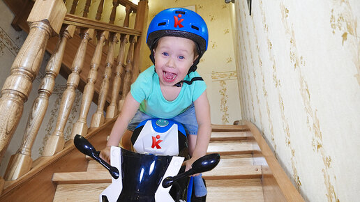 Малыш и гонки по дому на мини байк. Видео для детей