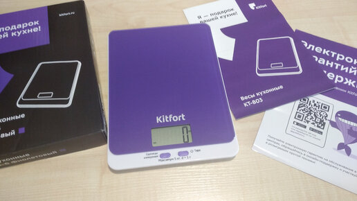 Моя распаковка чудесных фиолетовых кухонных весов, которые определяют вес до 5 кг с точностью до 1 грамма.
