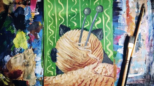 КЛУБОК и КОТ |🐾|Рисуем просто гуашью✌️