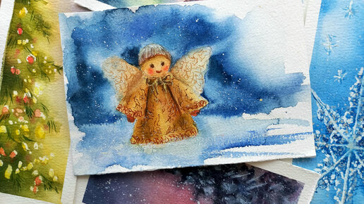 Рождественский сюжет - рисуем акварелью. Ртсование доя детей и взрослых.
