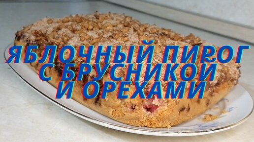 Пирог с яблоками, брусникой и орехами