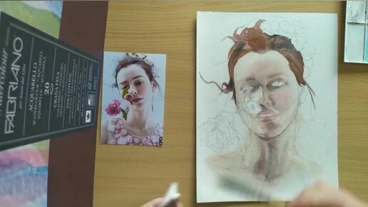 Портрет акварелью в технике по-сырому: залипательное рисование