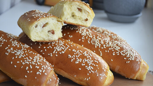 Сдобные булочки с изюмом. Получаются пышными и воздушными