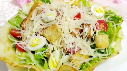 Салат Цезарь в сырной корзинке, как в Ресторане!