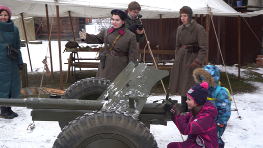 На игровой экскурсии в городе Москве на Крутицком подворье дети изучают огнестрельное оружие времён Великой Отечественной войны