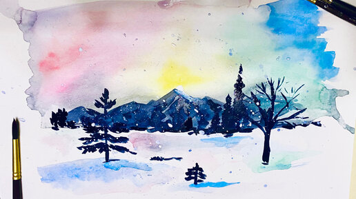 Как легко нарисовать зиму акварелью