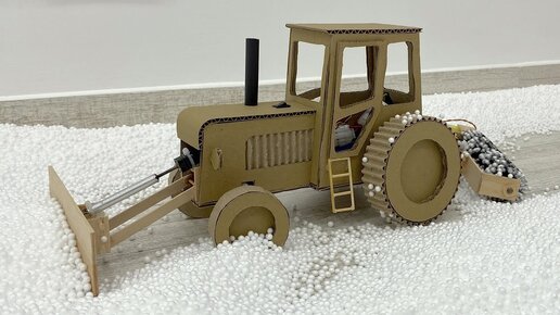MTZ Tractor road cleaning with snowplow and rotating brush