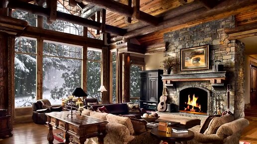 Зима 2022 камин за окном снег