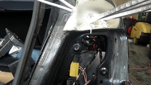 Кузовной ремонт с наплавкой олова, рихтовка оловом Mercedes W204 C класс.