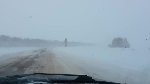 Наш типичный зимний пейзаж из окна машины(едем домой)