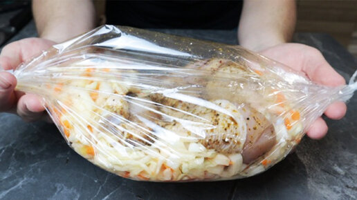 Просто закидываю всё в пакет для запекания и вкусный ужин с капустой и курицей готов. Быстрый рецепт
