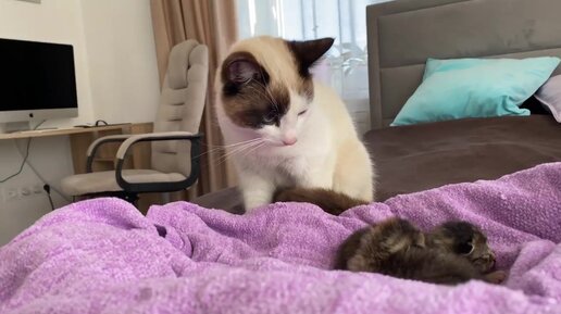 Кошка и новорожденные котята!