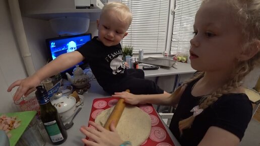 Дети "готовят" пиццу