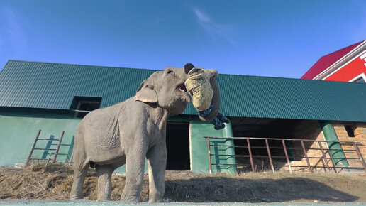 Слониха катает на хоботе любимого кипера и УЛЫБАЕТСЯ!