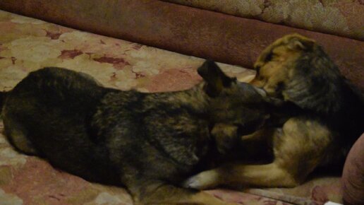 Игры Бима и Варьки на диване. Первая ночь Варьки в нашем доме.